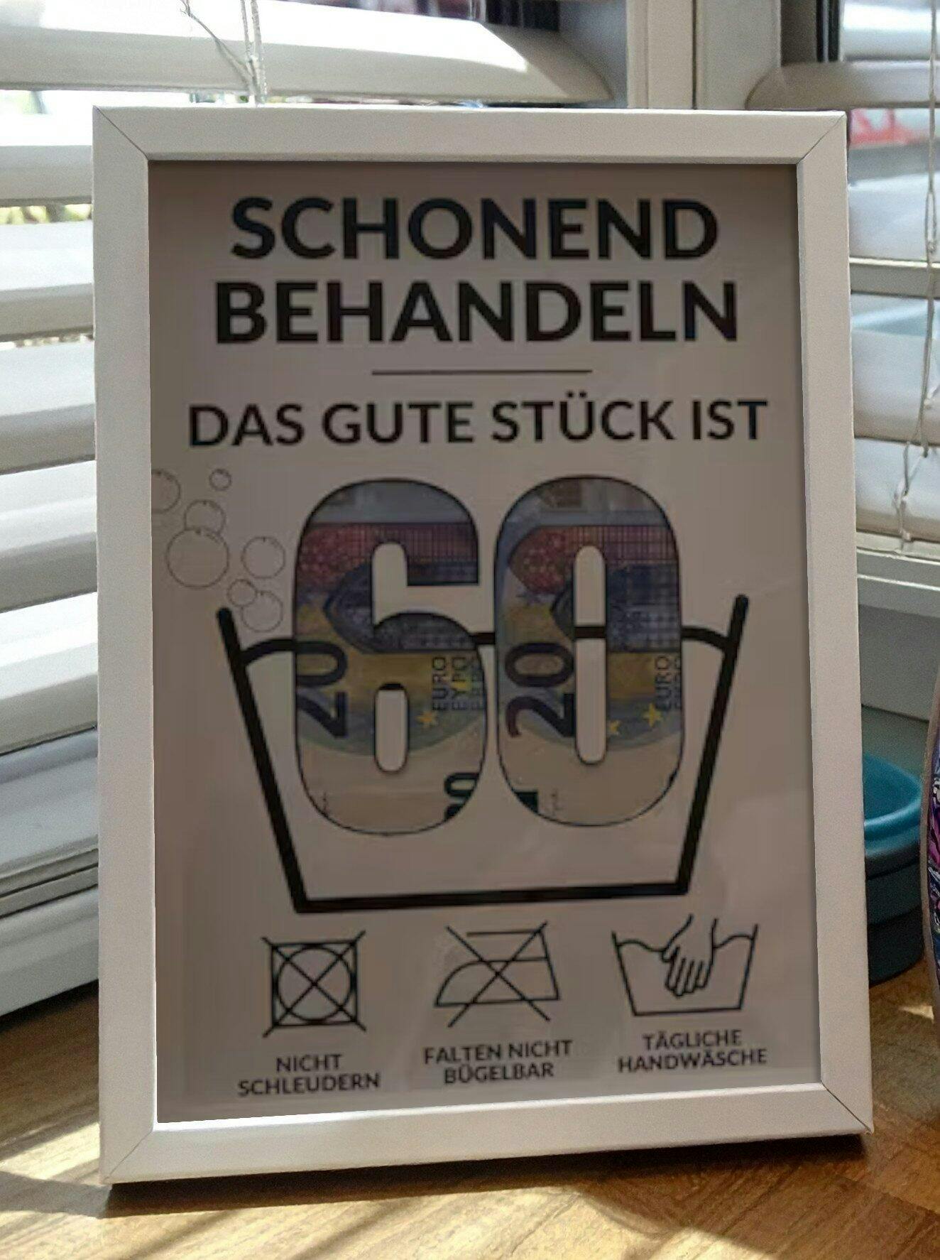 Ein humorvolles und gleichzeitig stilvolles Geldgeschenk zum Geburtstag: Das Motiv zeigt eine große Geburtstagszahl in einem ikonischen Wäschezeichen-Symbol, versehen mit der augenzwinkernden Aufschrift „Schonend behandeln – das gute Stück ist …“. Die Zahl lässt sich nach dem Ausdruck ausschneiden und mit einem echten Geldschein hinterlegen. So entsteht ein individuelles und originelles Präsent für jedes Alter.