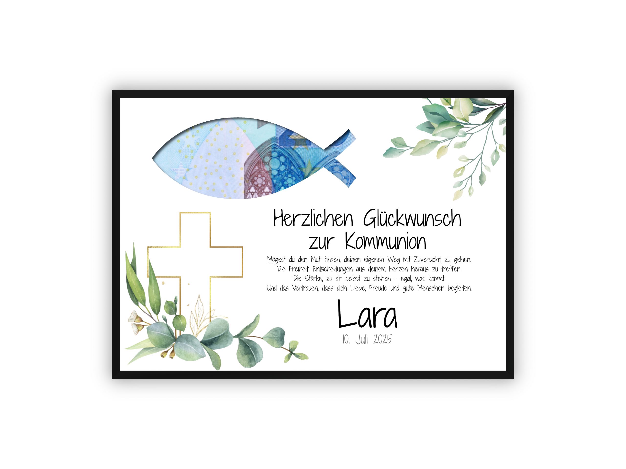 Geldgeschenk zur Kommunion | Ichthys-Fisch zum Ausschneiden & Wunschtext