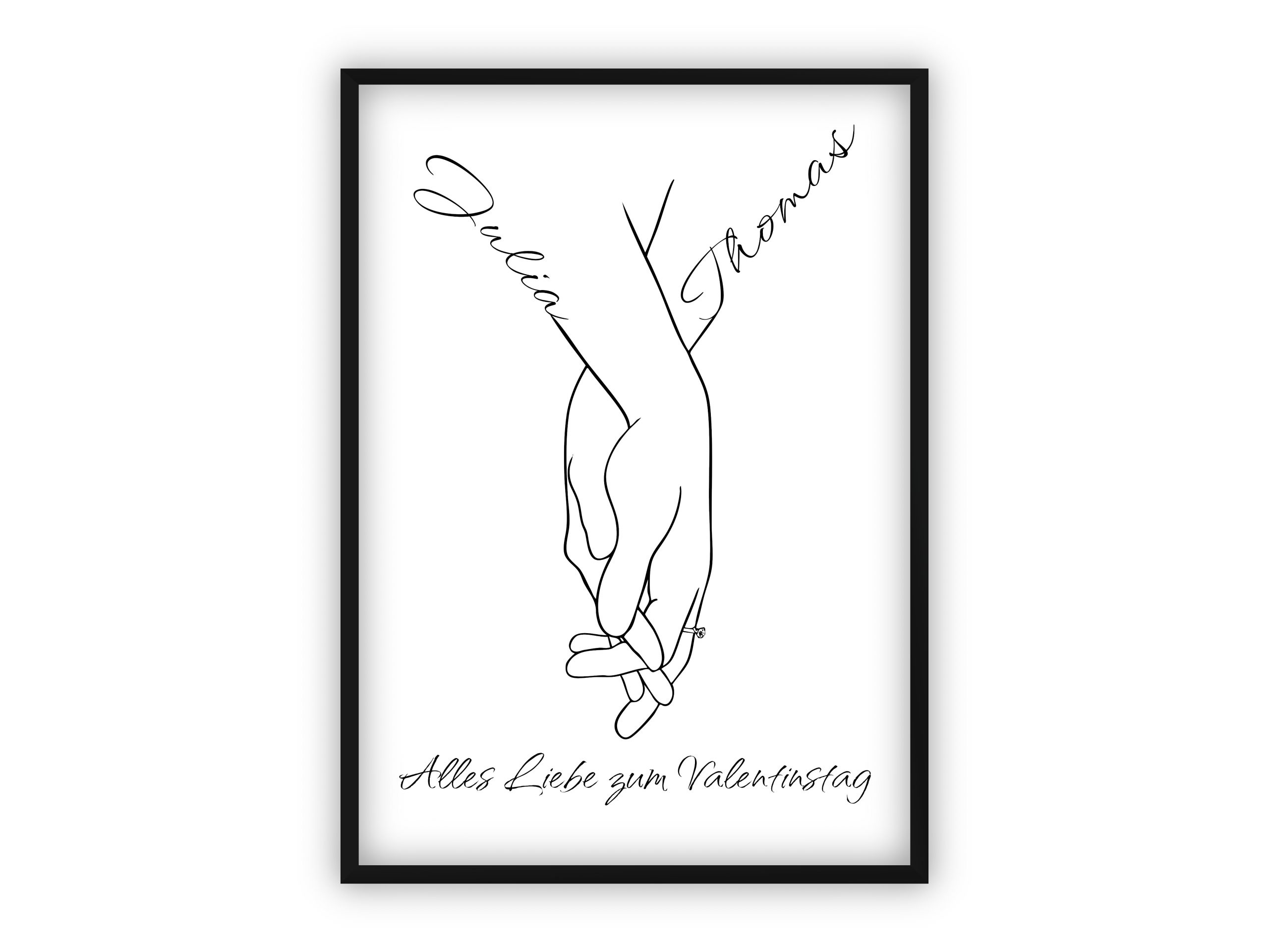 Geschenk zum Valentinstag | Line-Art „Händchenhalten“ mit Namen